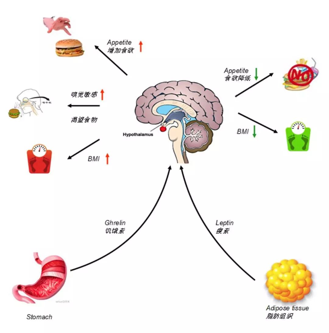 瘦素是由脂肪细胞合成,传递给大脑用来分辨要不要多吃点的信号。瘦素少,大脑就让我们的分泌大量饥饿素,让食欲变好。本来我们有正常的瘦素水平,吃的也正常,节食后瘦素少了,吃的多了,自然复胖了。