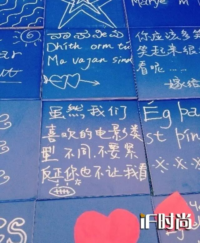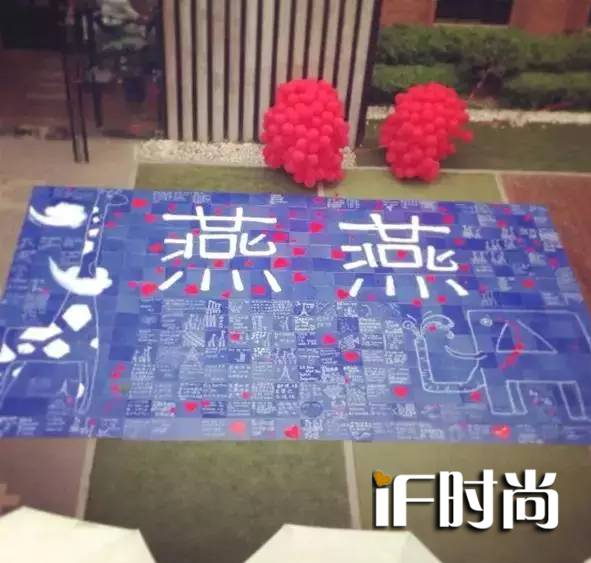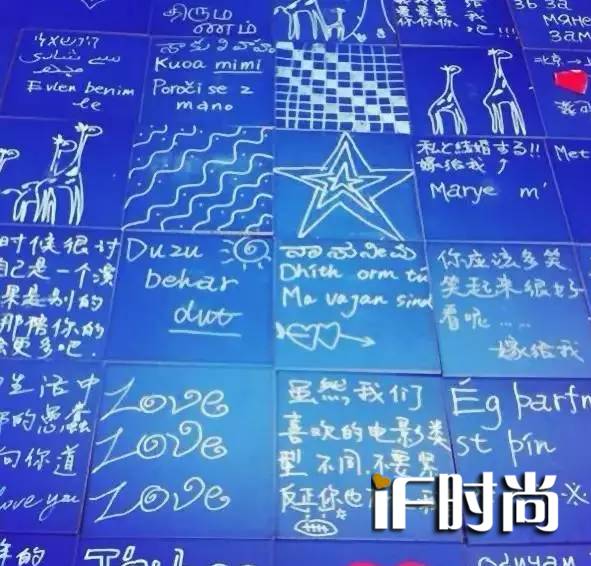 ▲求婚的时候,杜江准备了许多蓝色的瓷砖,在上面写了几百种语言的我爱你和两人谈恋爱时的甜蜜话语。