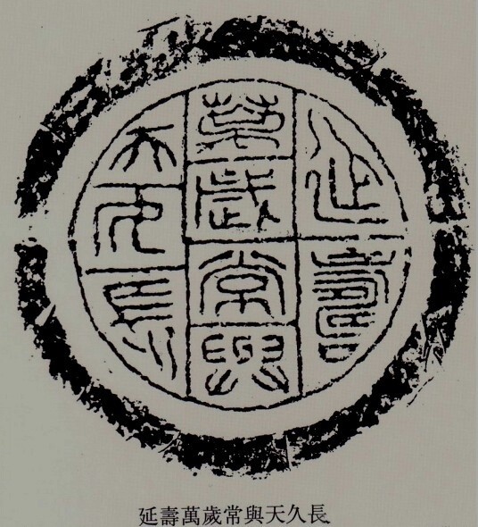 史载,秦始皇、汉武帝希冀长生不老,听信神仙方士之言,不惜多次上当,花费巨大的财力、人力寻求烧炼不死之药。尽管他们最终都未逃脱死亡的结局,但他们寻求不死之药的行动却在秦汉社会中造成了巨大的影响。一般的中下层人民既无人力也无财力去寻找所谓的不死之药,只好通过“延年”“益寿”“万年”“千秋”等吉语命名来寄托自己对长寿、永生的希望。有人认为,追求延年益寿、长生不死,反映了贵族阶级企求永远享受人间富贵生活的消极思想,是贵族阶级的专利。实际上并非如此。企求延年益寿、长生不死应是人类的一种普遍欲望。如中国古代的“五福”,无论是寿、福、康宁、修好德、考终命,还是寿、福、贵、康宁、多子,都把寿摆在第一位,瓦当文字和文献中大量出现的吉语也是对最此最好的证明。