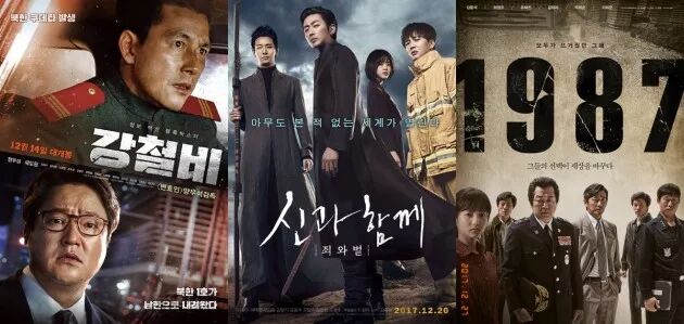 好在12月三部强势片尾韩国电影挽回了些颜面,《钢铁雨》(14日上映)和《与神同行》(20日上映)势如破竹眼看都要突破300万观众,将于27号上映的《1987》也因以1987年韩国民主化抗争真事改编而备受关注。