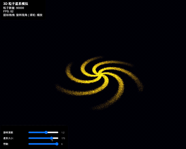 除了上面的这些案例,官方还发布了他们自己跑出来的一些很不错的案例,比如这个3D粒子的旋转星系,在光影的控制,交互上做的也很厉害。