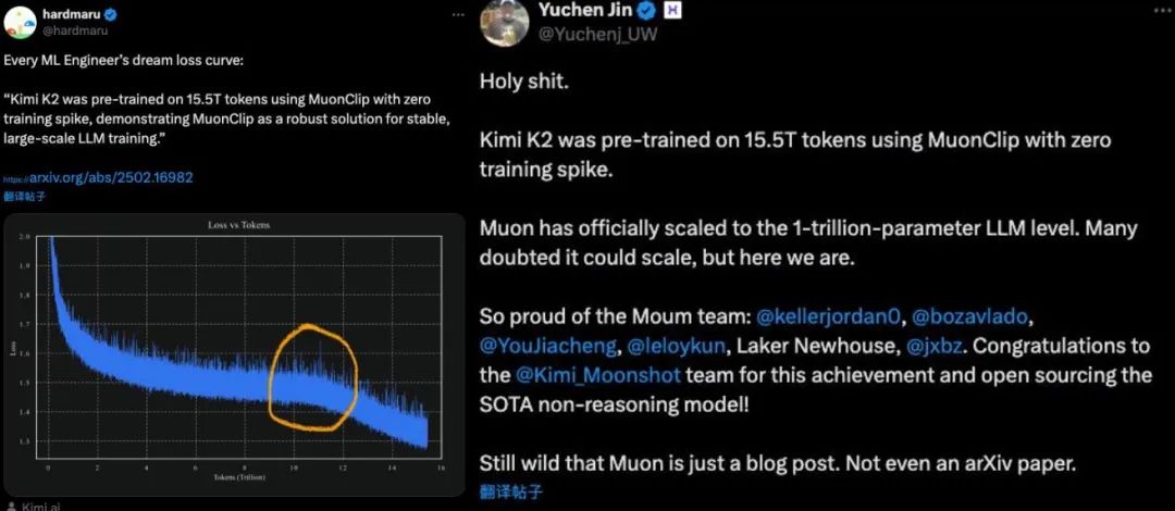 比如拿了黄仁勋投资,日本AI新秀Sakana AI Labs的创始人,就完全被Kimi K2的损失曲线征服了,说这是每个圈内工程师梦中的画面。