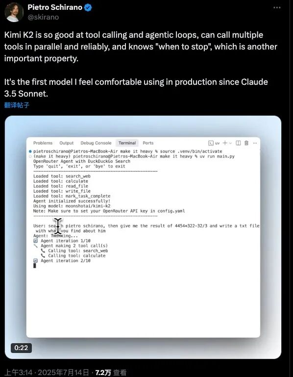 怎么个事儿呢,这得说到前几天。上周五深夜,Kimi放出了万亿参数的MoE模型Kimi K2,然后这款国产AI就因为 big and beautiful 在海外技术圈刷屏了,很火的那种。