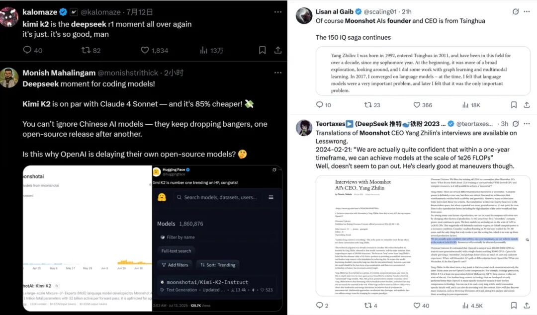 MoonshotAI、Kimi、Gemini、Anthropic、X、Wes Roth、Varindia等,部分图源网络