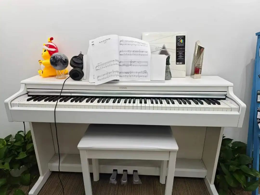 公司门口就摆着一架能自动演奏的钢琴,上面是摇滚乐队Pink Floyd的专辑《The Dark Side of the Moon》(月之暗面)。