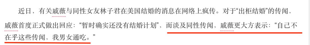 在戚薇这一系列行为之后,关于她是【同性恋】的传闻越传越真,甚至还传出过她要和同性恋人结婚的消息▼▼▼