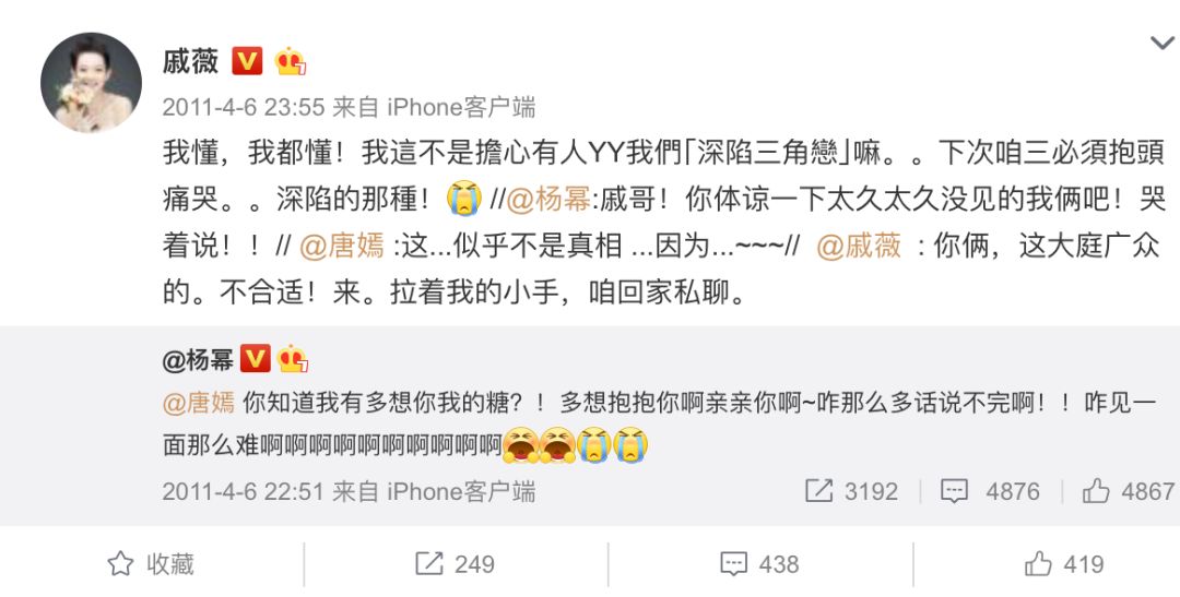 唐嫣那会儿和杨幂很好呢,于是加上戚薇就是“深陷三角恋”▼▼▼