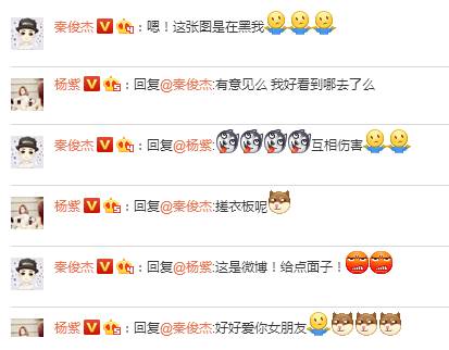 已婚人士们纷纷虐狗,刚刚陷入爱情的小情侣秦俊杰和杨紫在微博上也是一点不低调,在微博公然开始打情骂俏。