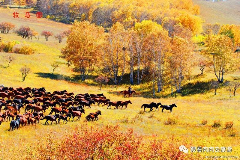 今天换成越野车,早晨:北沟一线、(大红山、将军泡子、影视基地、欧式风光区、北沟、野鸭湖、红松湖、小峡谷、五彩山、百草敖包、杨树背)白桦林个人创作(三五棵成簇,树的光影加色彩的变化),后至大峡谷五彩山创作。下午游览东沟一线(河头、喇嘛山、刘家地,猫儿山、盘龙峡谷、花古鲁台,通风沟、东沟)这里更加的深度一般人到不了的地方,最适合拍日落的地方,看着落日的余光把每一棵树照得通光透亮,洒下一片片的阴影,那金黄的白桦,婆娑的艳影,突然来了一群肥美的羊。满载一身的金辉,在草原斑斓里悠然漫步。一群骏马,随着放牧人手里鞭子的脆响,可以瞬间一动不动,等待着下一个号令......。晚宿草原农家宾馆