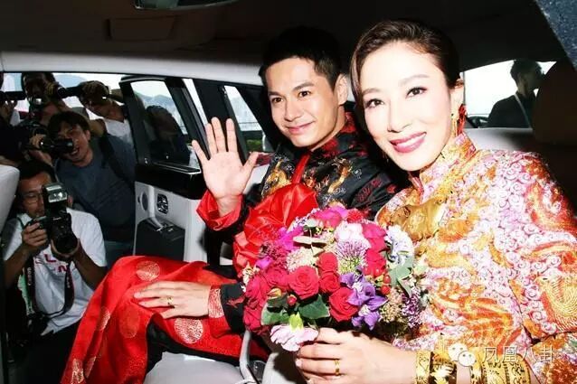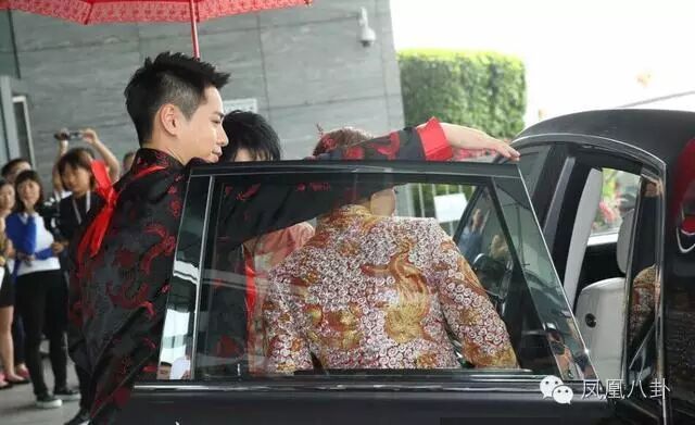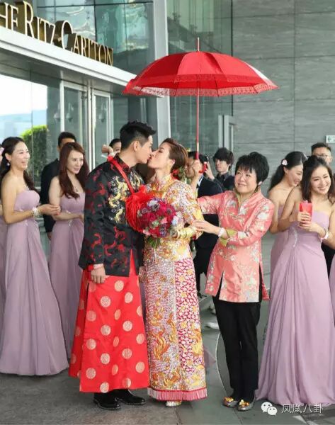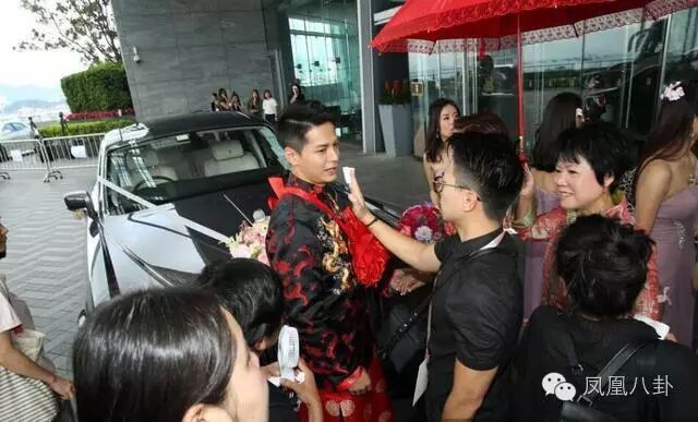 一对新人由酒店步出就已经开始化身接吻鱼,二人应现场记者要求,其中一次亲了十秒,上到车又继续亲,前后足足亲了六次!