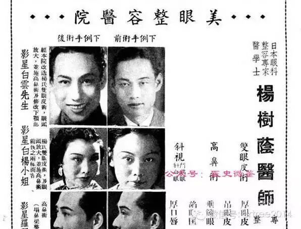 现如今的女明星,整形了闭口不承认,实在抵不过悠悠众口就跑去医院做个整形鉴定,宣扬自己是天然的。民国时期多整形的态度是开放的,明星们毫不忌讳露出真容,反而大肆替整形医疗机构作宣传,在现代社会是难以置信的一件事。当年影视圈的红星湖南妹子白杨,小生白云都公开承认整过容,还成为了整容医院的广告代言人。