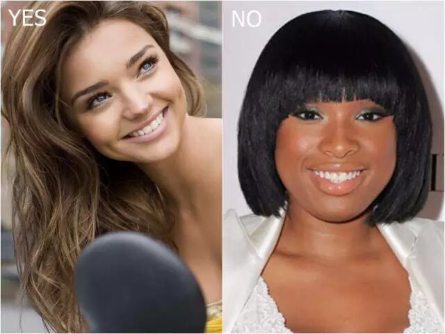 圆脸的苦恼就是两颊的babyfat,圆脸的人不太适合齐浏海搭配鲍勃头,会让脸型更显圆润。圆脸的人可以用不规则、旁分的波浪长刘海,修饰肉肉的脸。
