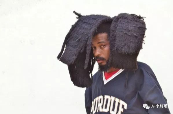 黑人的头发大多自然卷曲成玉米须的状态,我问过一些黑人朋友,他们的Dreadlocks是如何形成的,得到了很有意思的答案。他们每天早上洗漱的时候用手随意的抓起一撮头发朝着一个方向拧一下,再把发尾系个结,打火机烧一下……就会得到一头脏辫。这是最普通的基本款,也有更加方便的,用一块洗车的大海绵,中间抠几个洞,然后在头上顺(逆)时针摩擦,脏辫达成!