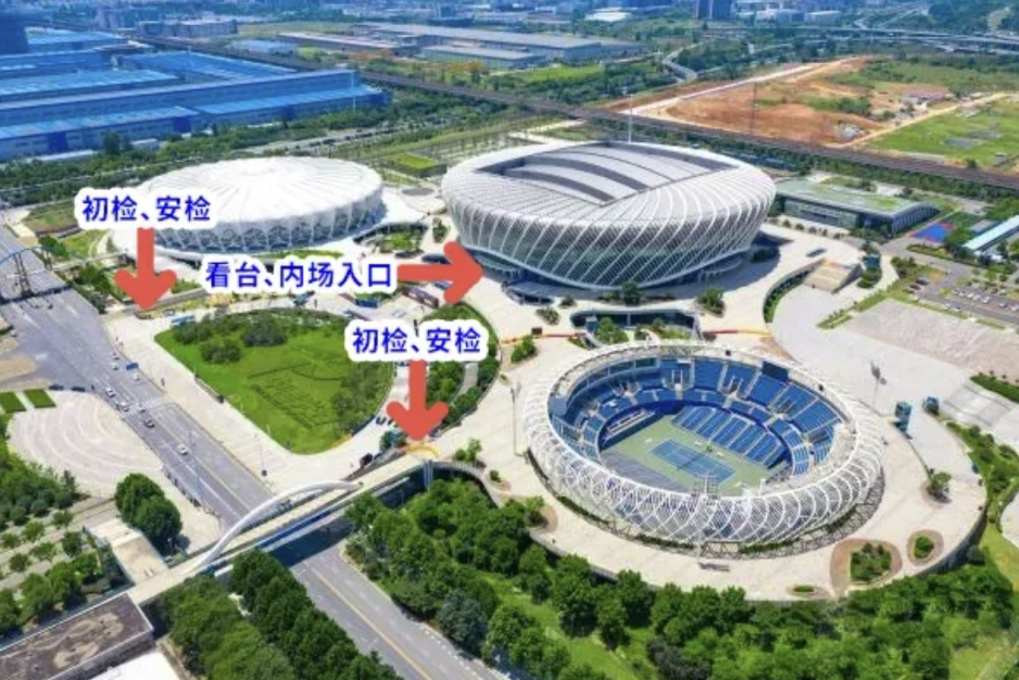 现场观演观众统一由光谷国际网球中心东南门观众入口进入 → 初检 →安检 → 检票 →进入场馆。