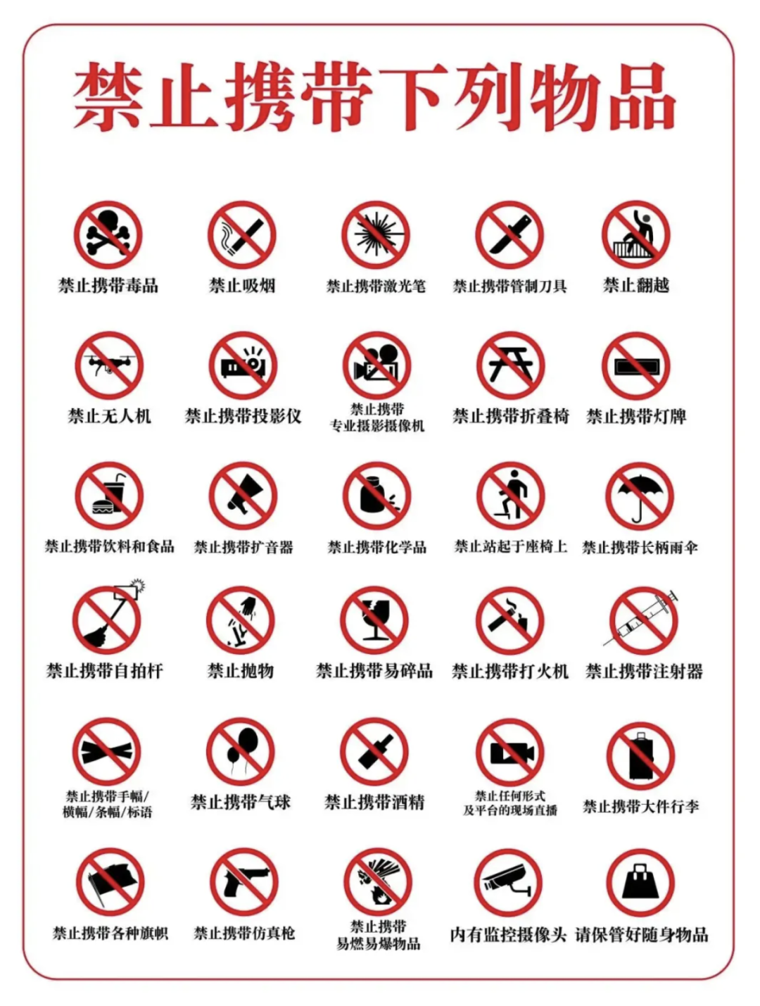 ?禁止携带发箍/灯牌/灯幅/标语等应援物品。