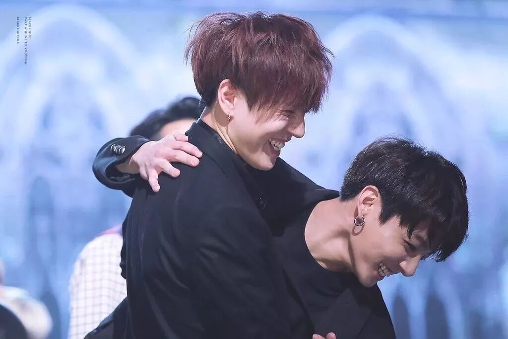 田柾国和金有谦这两位也需要单独说一说呀,因为这俩孩子真的是太喜欢黏在一起了!私下里有时柾国会去接有谦下班
