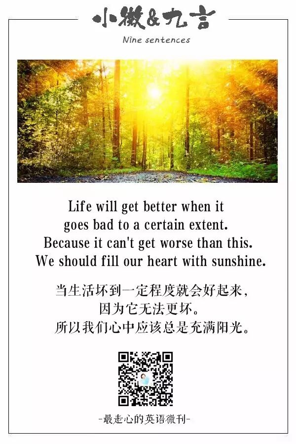 当生活坏到一定程度就会好起来,因为它无法更坏。所以我们心中应该总是充满阳光。