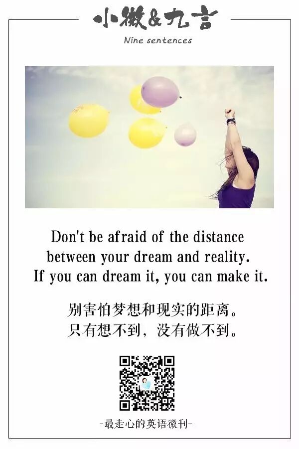 别害怕梦想和现实的距离。只有想不到,没有做不到。