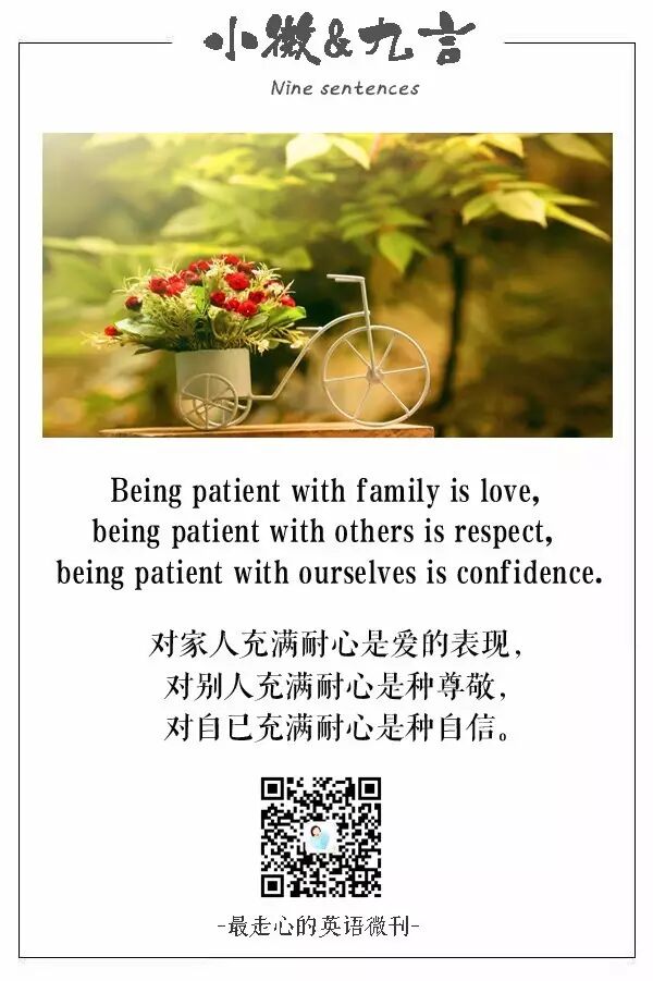对家人充满耐心是爱的表现,对别人充满耐心是种尊敬,对自已充满耐心是种自信。