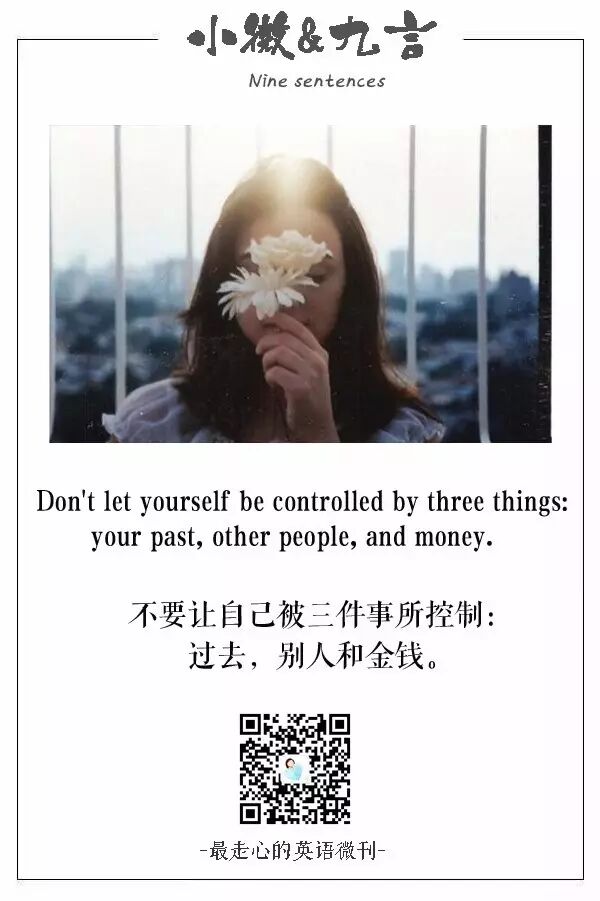 Don't let yourself be controlled by three things: your past, other people, and money.