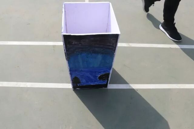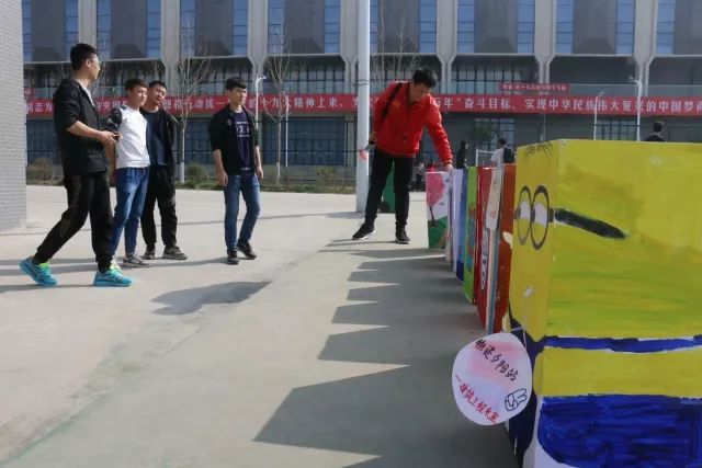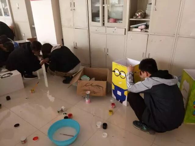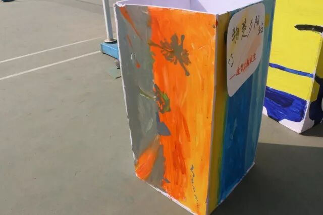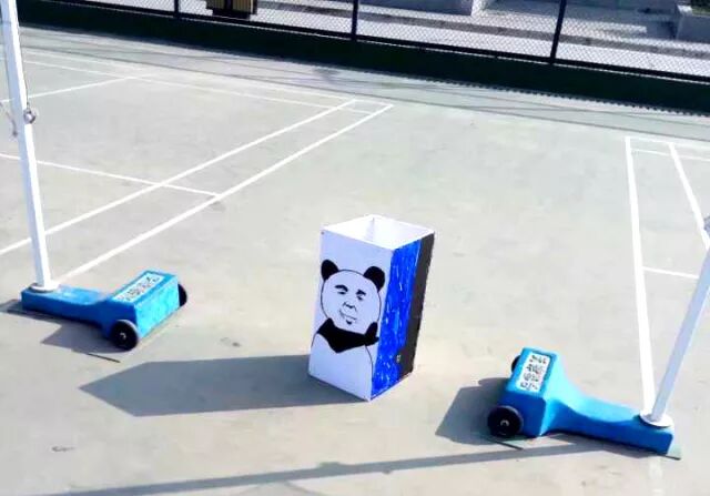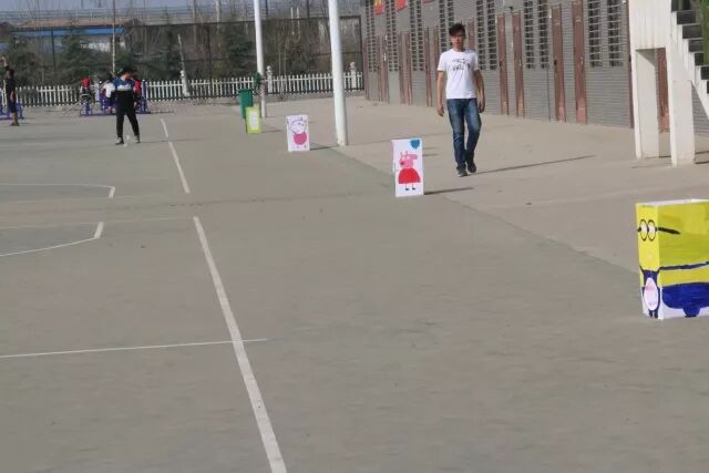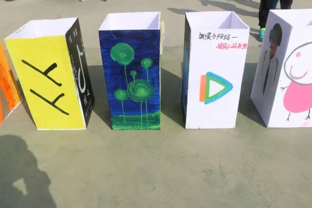 这个创意来源于操场的垃圾桶距离篮球场非常的远,为了方便同学们丢置垃圾,建筑系学子变废为宝利用废PVC板手工制作卡通迷你垃圾桶,装饰校园,服务广大师生,让体育场的垃圾塑料瓶有了新归宿,成为运动场一道靓丽的风景线。
