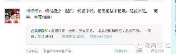 吴奇隆关于刘诗诗的第一条微博竟然是调侃她的旗头