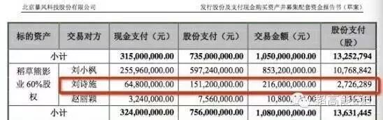 但如今,老吴旗下七间“稻草熊”公司均添加刘诗诗为法人,“稻草熊”被暴风科技收购后,刘诗诗到手的现金和股票总价值达到2.16亿。