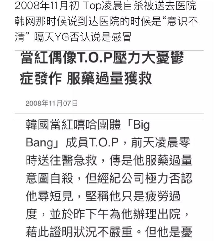 据说那个时候,因为申敏儿提出了分手,TOP就服药自杀过。