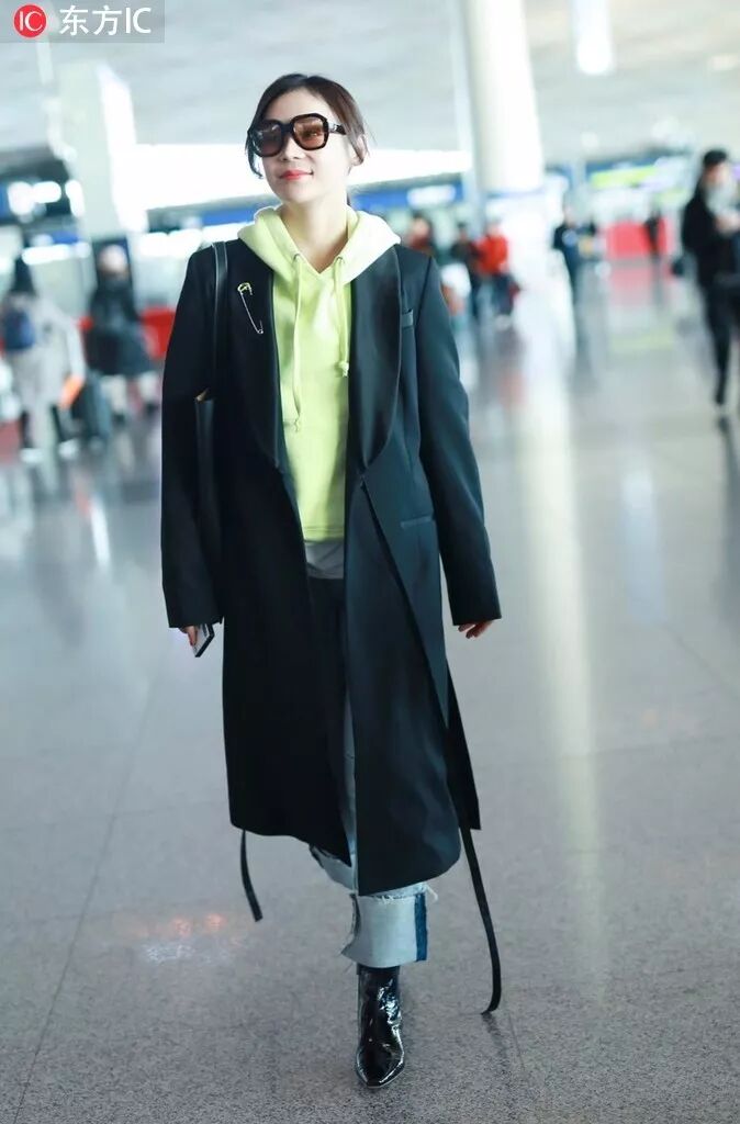 荧光绿帽衫+大衣的正确打开方式~