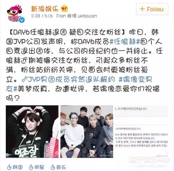 从昨晚开始,小编的微博就被韩国乐队DAY6成员任晙赫退团的消息刷屏了。