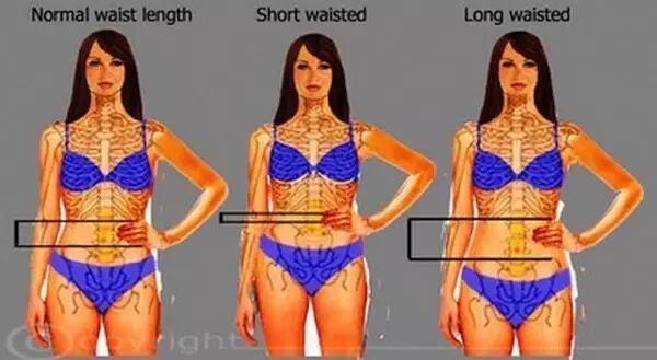同样的身高,因为腰的长度不同,导致了多么截然不同的身材。从左到右以此是:平均腰长,短腰和长腰。