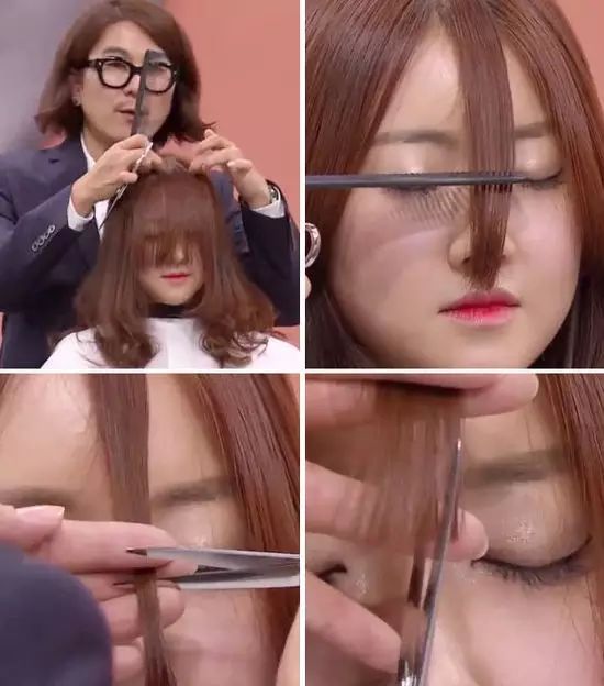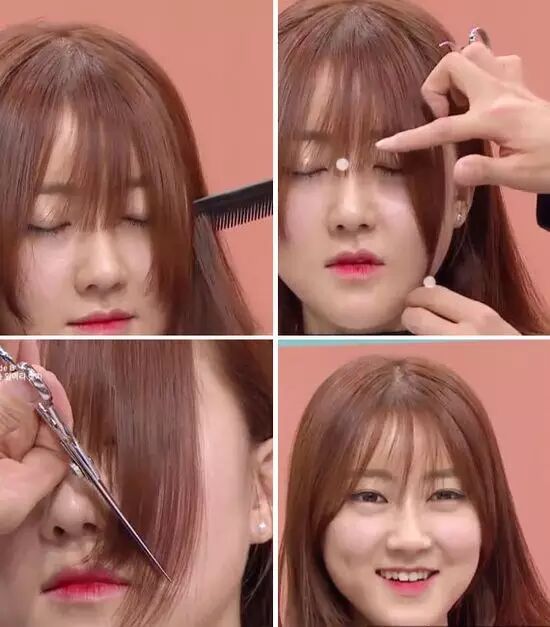 是啊,若有似无的空气刘海能hold住几乎所有造型,必要的时候减龄且修饰脸型,看烦了还能立即扒拉开,御姐范儿十足的中分立刻就出来了。不过,一个完美的空气刘海儿想要成型其实是有许多技巧的,这里奉上一个韩网教程: