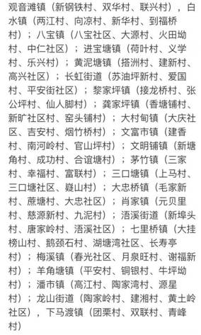 路口镇荆华村;北山镇福安村;高桥镇锦绣社区;黄花镇黄花村;黄兴镇车马村;果园镇古井社区;福临镇福临铺社区;江背镇特立村