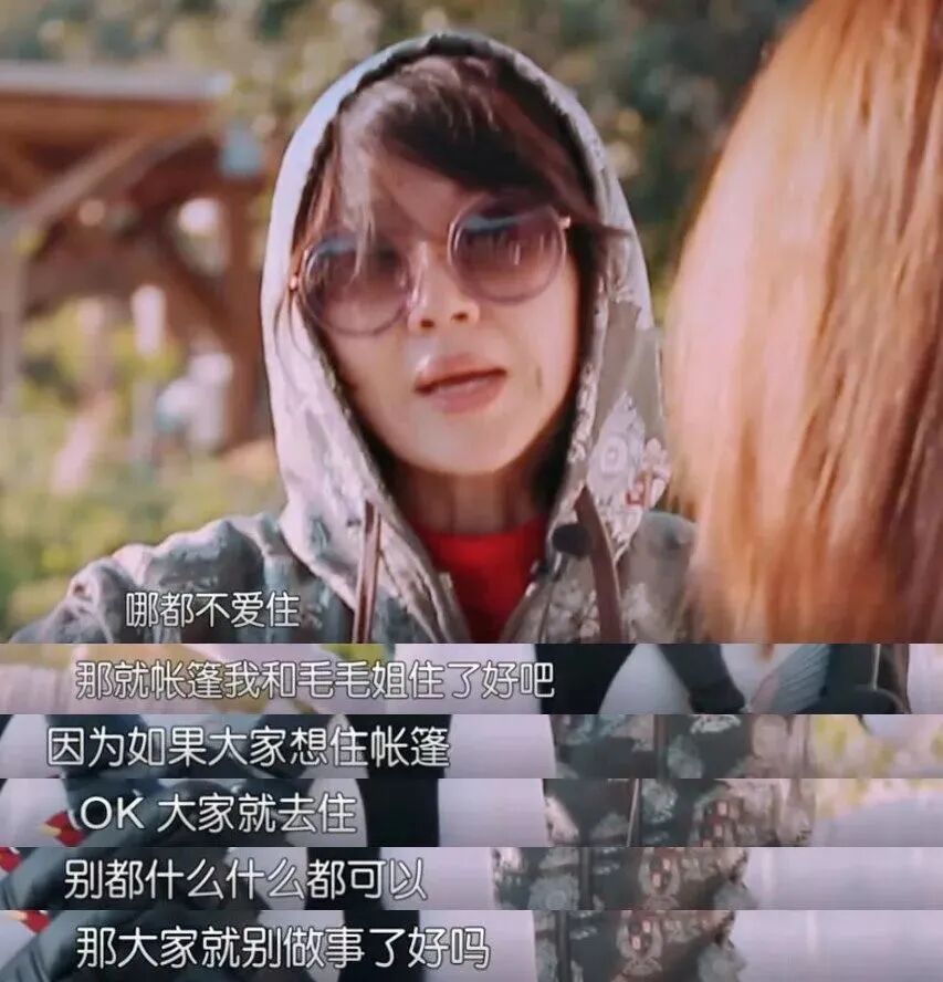 那些嘴上说着无所谓的人,其实是非住帐篷不可的,还在背后偷偷diss队友,人前人后两个模样。