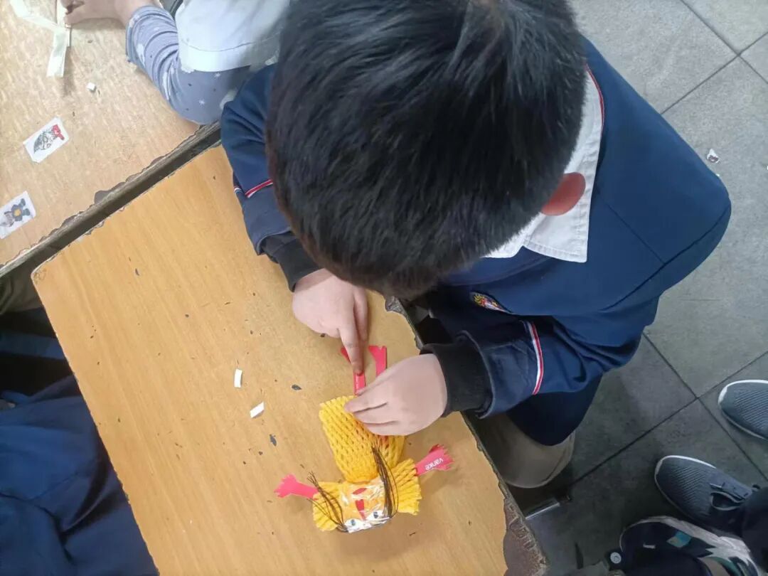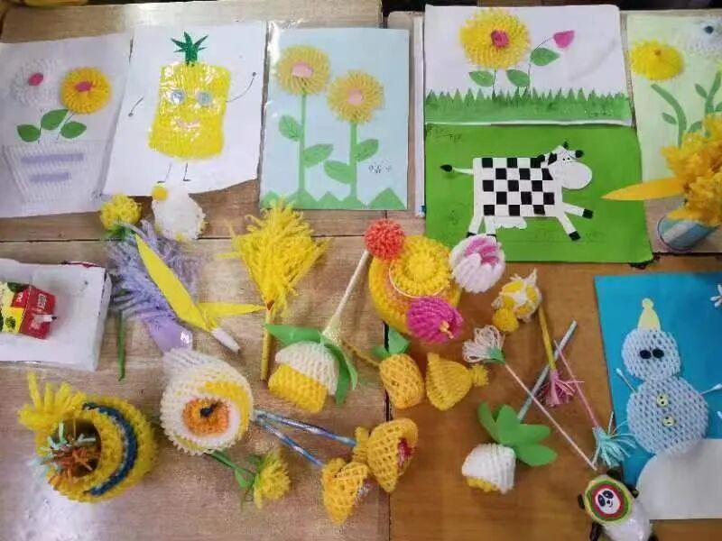 看他们各展所能,精心制作了一件件别具匠心、令人赞不绝口的手工艺品。各种水果发泡网、纸张、超轻黏土、谷物材料在学生们的精心打造下,成了一件件令人赞叹不绝的作品。