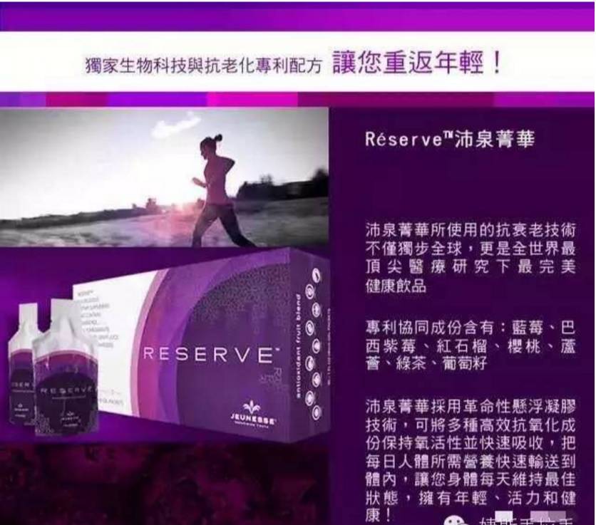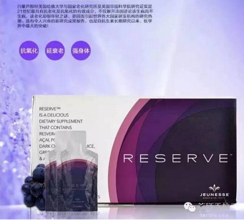 图中小紫包为白藜芦醇,为美商婕斯JEUNESSE 的沛泉菁华Réserve。