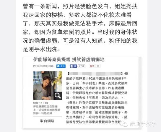 伊能静曾发文回应自知46岁怀孕不易,“这个年纪要怀孕,的确需要很多努力也很辛苦,但是我真的很希望能让我先生知道胎动时的感动,也能走为人父的人生历程,爱会让人勇敢,不轻易放弃。”