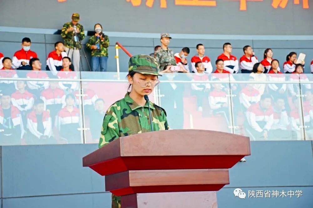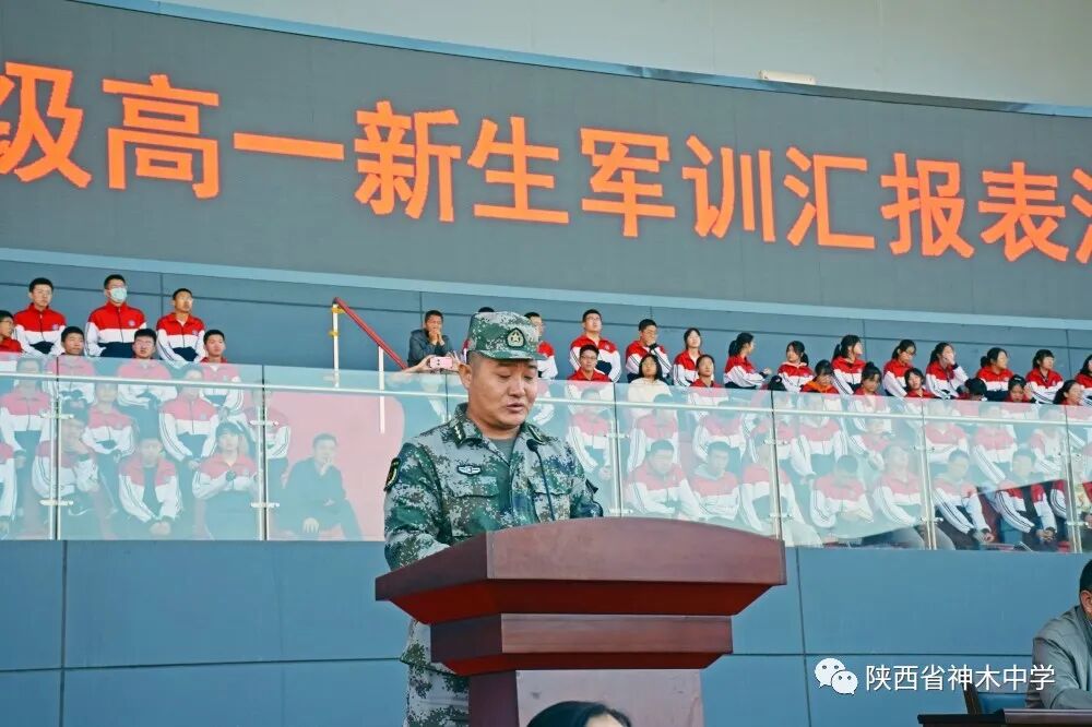军训团长高梓淳在讲话中充分肯定了神木中学师生在军训中收获的丰硕成果、严明的纪律和良好的风貌,并对受训同学寄于殷切的期望和美好的祝愿。