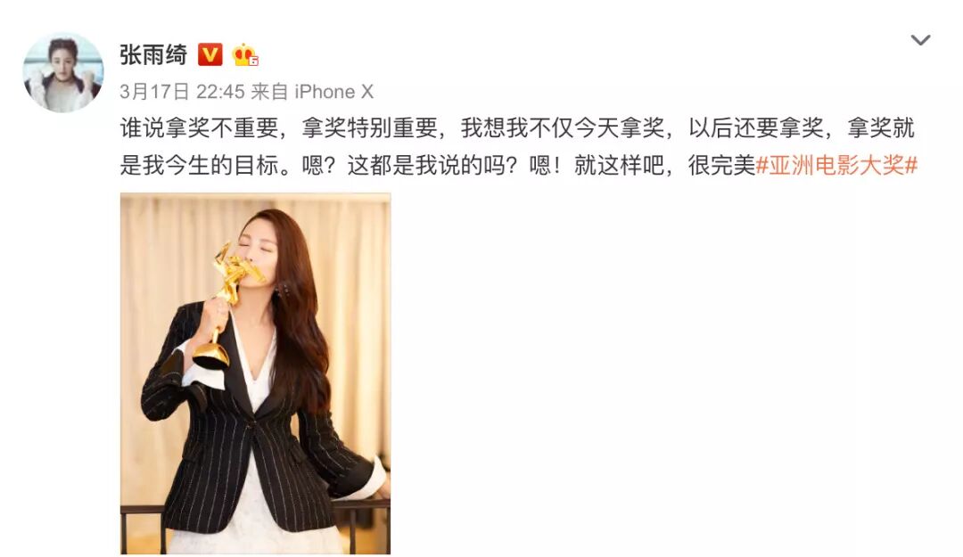 前段时间,凭借电影《妖猫传》,张雨绮获得了亚洲电影大奖的最佳女配,用她在节目里的话说:“被叫了这么多年花瓶,这次我终于证明了自己!”