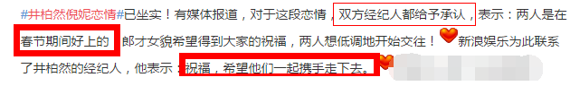 人家经纪人都承认了。表示两人在春节期间已经好上了。