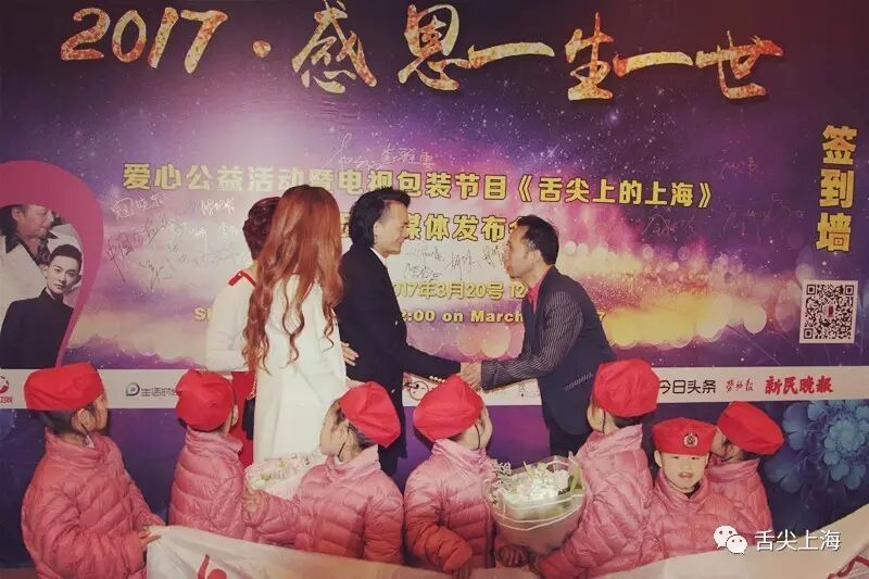 《舌尖上的上海》品牌发布会宋晓波与孩子们合影