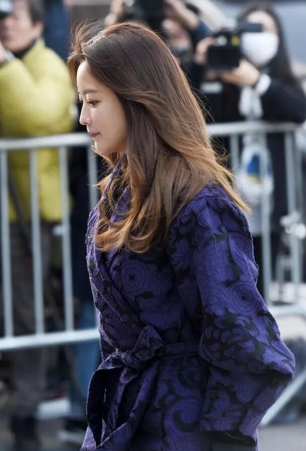 金喜善选择深紫色大衣的时候,充分展现了她成熟魅力和对流行趋势的敏感性。深紫色给人一种神秘感和高贵感,符合金喜善温婉大气的形象。而大衣中的细节设计也很有看点,金喜善巧妙地使用腰带来突出自己的身形曲线,增加了整体形象的优雅感。