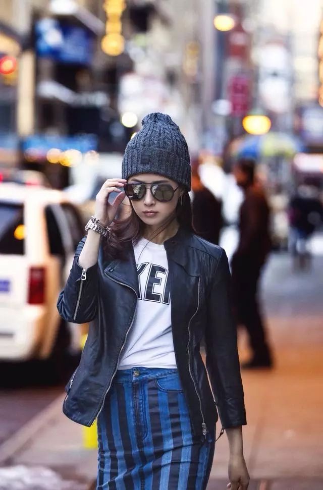 街拍搭配一般是中裙,很能遮住粗壮的大腿,展示纤细的小腿。