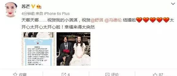 微博突然传来了女神舒淇的婚讯