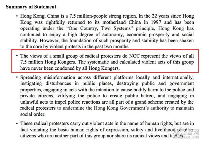 揭示香港真相,她们将在联合国发声 中国新闻网 港台女星 2019-09-09 16:30:34 1337 创作不易,用心坚持,欢迎请BaGua喝几杯爱心咖啡!打赏并支持本文 打赏并删除本文 来源:观察者网(ID:guanchacn)作者:徐乾昂周二(9月10日),两名香港商界女强人——美心集团创始人伍沾德长女伍淑清以及香港各界妇女联合协进会主席何超琼,将亮相联合国人权理事会,就近期的“乱港风波”发表演讲。值得一提的是,上次在人权理事会上就“乱港风波”发表看法的,是加拿大籍“港独”歌手何韵诗。9月10日正逢教师节,这次两人将给何韵诗等“痴心妄想”人士上一节课,向外界说出真相:一小撮极端示威者的意见,并不能代表750万香港人。何超琼(左)和伍淑清(右)伍淑清和何超琼此次将代表香港各界妇女联合协进会(香港妇协),于9月10日参加联合国人权理事会第42届常规会议,并发表题为《香港的真实情况》的演讲。香港妇协早前已获得联合国经济及社会理事会的咨询地位(consultative status)。9月8日,两人的演讲稿已经上传联合国官网。演讲稿写道:“香港一小撮极端示威者的意见,并不能代表750万香港人。这些有组织、有预谋的暴力事件,从未被全港市民所允许。”此外,两人强调,“乱港风波”至今,极端示威者打着“人权”大旗,却破坏公物,使用暴力对警察、市民造成身体伤害,本质上侵害了与其持不同观点市民的基本人权。香港特区政府修例的初衷,就是要为“台湾杀人案”中死者讨回公道,“出发点本来是好的(well-intended)”,唯独被示威者“劫持(hijacked)”来损害港府的威信。就外界对香港警察“暴力执法”的指控,伍淑清和何超琼反驳,为香港警队护航。信中写道,任何人如果看国际媒体,如BBC、CNN、Bloomberg等的报道,都会看见警方清场前举起不同颜色的旗帜向示威者作不同程度警告,要求示威者散去。信中接着举例:但在过去两个月,示威者不断在香港主干道及过海隧道内设立路障;在街道上倒油纵火,在警署外燃烧垃圾及木头等;用“水淹”等形式破坏香港地铁站,导致交通瘫痪。甚至香港唯一的机场也不能幸免。示威者公然不理会警方警告,向警方掷砖、玻璃、金属等物品,甚至使用了汽油弹,又用激光照射警方的眼。只有在示威者暴力行径升级到这个情况的时候,警方才开始用催泪弹及橡胶子弹驱散人群。“警察的本职工作就是执法、维持秩序……世界各地的警察均使用催泪弹和橡胶子弹,并非香港独有。若依足法律程序使用催泪弹及橡胶子弹,能有效隔开警方与示威者的距离,避免近距离的肢体冲撞,导致受伤。”“在人权问题上摆出歧视姿态,搞双重标准,是不能接受的。”两人最后强调,“这就是有关香港真实情况的声明。”伍淑清为香港美心集团创始人伍沾德长女,有“美心大小姐”的称号。同时,她又是内地首家中外合资企业(北京航空食品有限公司)创始人。因其创建了注册编号为“001”的合资企业,伍淑清也被尊称为“001小姐”。就最近香港发生的系列骚乱,伍淑清已经多次发声。8月25日,伍淑清接受央视新闻采访时表示,近期在香港不断发生的暴力事件严重损害香港的形象,打击香港的经济和民生。她告诫香港的年轻人,不要受到外部势力的蛊惑,参与违法活动,而要开拓视野,真正了解自己所处的世界,发展自己的事业,做真正有意义的事情。而在2019年福布斯全球亿万富豪榜中,何超琼排名第413位。同时何超琼也是香港妇协主席,该机构于8月25日举行全港妇女守护家园大集会,呼吁社会“向暴力说不”。8月25日,全港妇女守护家园大集会在香港举行。新华社记者刘大伟摄就“乱港问题”,加拿大籍“港独”歌手何韵诗曾于7月初在联合国人权理事会上,叫嚣“将中国从人权会议名单中剔除”等言论。对此,外交部发言人耿爽于7月9日回应:何韵诗的有关言论是痴心妄想,不自量力。耿爽进一步表示,香港是中国的特别行政区,香港事务纯属中国内政,任何国家、组织和个人都无权干预;第二,有关非政府组织违反《联合国宪章》和人权理事会相关规定,在发言中挑战“一个中国”原则,干涉中国主权和内政,污蔑中国人权状况,中方对此表示坚决反对并予以强烈谴责;第三,香港回归以来,“一国两制”、“港人治港”、高度自治方针得到切实贯彻落实,香港居民享有的各项权利和自由依法得到充分保障,事实有目共睹。保持香港繁荣稳定,不仅符合中国的利益,也符合世界各国的利益。●谎称打死人、扮街坊辱警……港媒揭纵暴派五大谎言●毫无底线!撒纸钱、点蜡烛,暴徒大闹港警婚礼●那只逃进玉米地的老虎,死了原标题:《揭示香港真相,她们将在联合国发声》编辑:何颖责编:马学玲 创作不易,用心坚持,欢迎请BaGua喝几杯爱心咖啡!打赏并支持本文 打赏并删除本文 感谢您的支持鼓励,我会继续努力的!文章地址:用户邮箱:打赏金额:USDT 请输入数字点击”去打赏“,即可进行打赏支持本文章哦 何韵诗 About the Author 中国新闻网 功能介绍:新闻,有温度;分享,是力量! 官方认证:北京中新网信息科技有限公司 Related Posts 甄子丹建议 2023-03-05 12:38:40 许魏洲:记住白民和,忘记许魏洲 2023-02-20 22:38:06 楼阳生当选河南省人大常委会主任,王凯当选河南省省长 2023-01-17 20:03:34 杨丞琳遭绿营出征?国台办回应 2022-09-14 16:02:19 “一边看崔健演唱会,一边泪流满面” 2022-04-16 22:34:07 发表评论