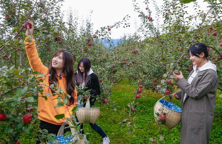 愈来愈大的雨势没有阻挡住她们探寻的脚步,很快她们被路边乡民的苹果吸引住,果子红彤彤的,散发着阵阵果香,还带着晶莹的雨水,色泽透亮,十分诱人,三姐妹尝过之后,交口称赞,一人挎着一个篮子,跟着乡民进入“红苹果乐园”,面对“三百斤”的任务,三个女孩虽然面露难色,但仍然没有退缩,进入果园后相互协作,认真挑起果子,间或还有笑声传来,始终活力满满,元气十足。仔细核对重量后,三人成功地完成了任务,在听到乡民想要将这种有机苹果传播出去的愿望,当即决定帮助大叔宣传,并自发购买,寄送给节目里的前辈、同事,淅沥沥的雨中,她们趴在果箱上,一笔一划地写下,心中对远方亲友的祝福与感恩。