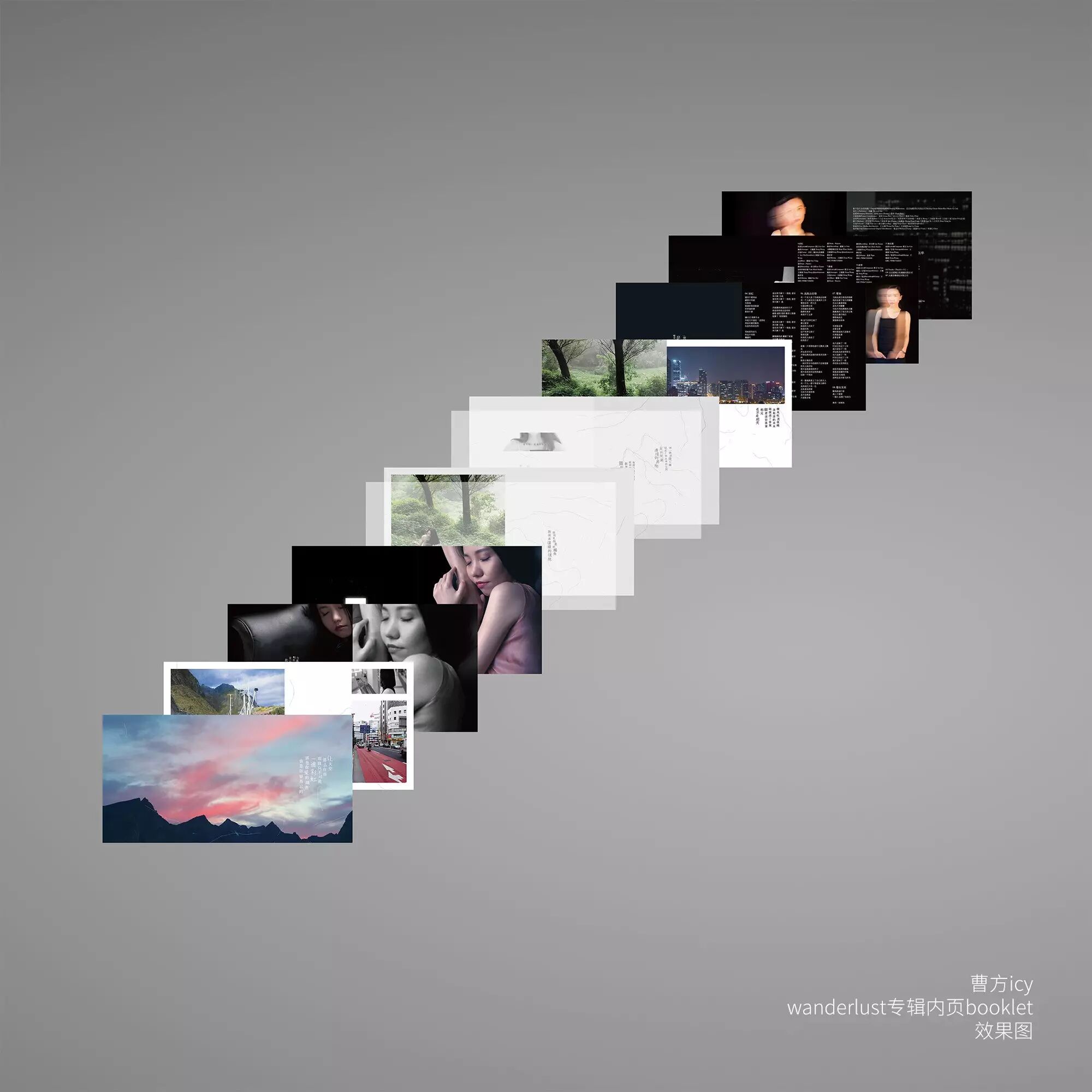 绵密繁复的精致意象,晦明晦暗的暧昧隐喻,曹方在其一贯温暖剔透的声线中加入一丝冷静的思考和洒脱的智慧,以“观察者”的身份诠释都市丛林中上演的一幕幕蜕变和成长。“Wanderlust·流浪癖”的主题为整张专辑带上些许理想主义的色彩,用音乐探索出走的意义。