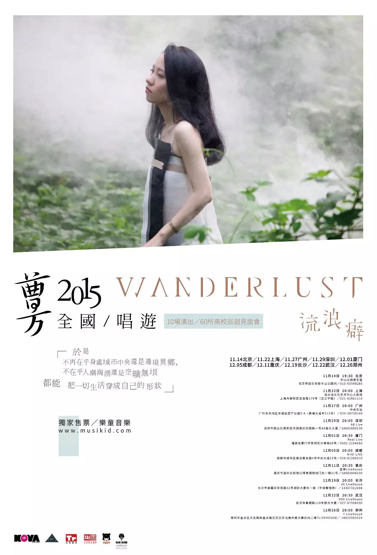【曹方2015《 wanderlust·流浪癖》全国唱游巡回音乐会】巡演信息如下: