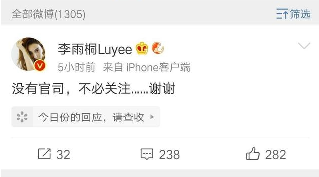 后来薛之谦还放话要告李雨桐,结果李雨桐直接回应:没有官司。