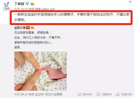 诸如此类的作秀还有许多,比如薛之谦的女儿降生,在微博上PO了一张一家三口指尖对指尖的照片。